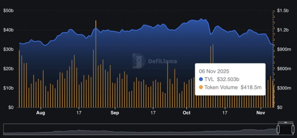 Dữ liệu về Tổng Giá Trị Bị Khóa (TVL) của Aave cho thấy, trong vòng 24 giờ, nền tảng này đã chứng kiến dòng vốn rút ra lên tới 682 triệu USD, đưa tổng giá trị tài sản khóa còn khoảng 32,23 tỷ USD. Động thái này phản ánh tâm lý thận trọng, hoặc có thể là tín hiệu chuẩn bị cho các nhà đầu tư chốt lời.