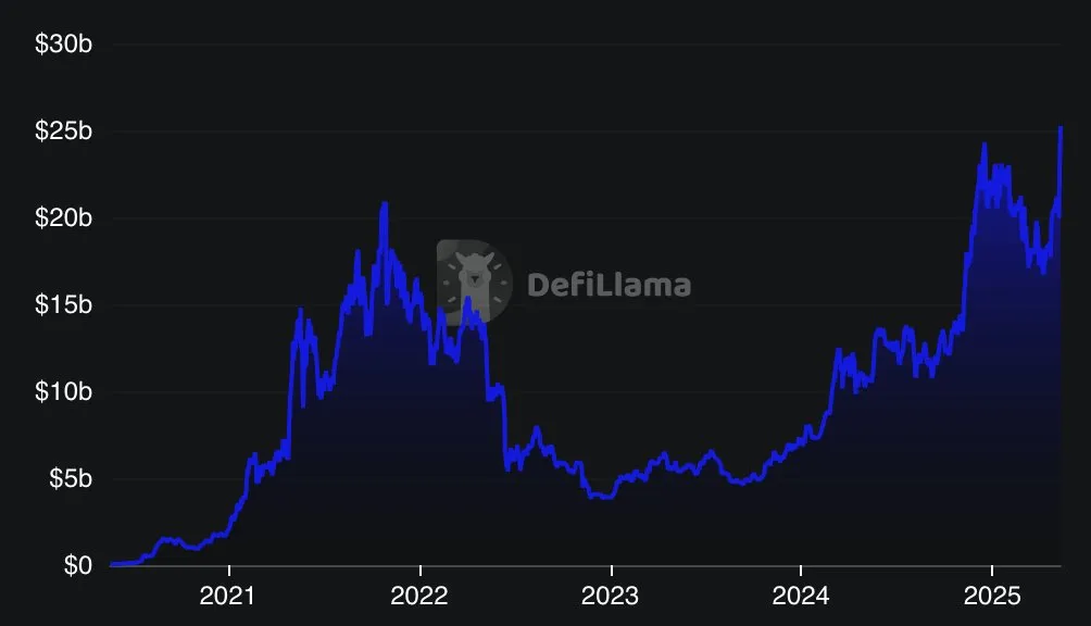 Động lực phía sau sự phục hồi này không chỉ đến từ việc gia tăng giá ETH mà còn từ những bước tiến quan trọng trong lĩnh vực DeFi. Người sáng lập Aave, Stani Kulechov, đã thông báo vào ngày 11/05/2025 rằng Aave đã đạt kỷ lục Tổng Giá Trị Khóa (TVL) lên tới 25 tỷ USD, đưa nó trở thành một trong những giao thức DeFi lớn nhất trong ngành.