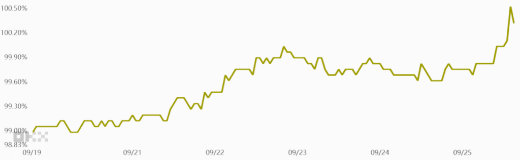 Nhu cầu về stablecoin tại Trung Quốc cũng phản ánh tâm lý của các trader. Thông thường, một sự quan tâm mạnh mẽ đến tiền điện tử có thể đẩy giá stablecoin lên khoảng 2% so với tỷ giá đô la Mỹ chính thức. Ngược lại, mức chiết khấu vượt quá 0,5% thường là dấu hiệu của sự sợ hãi, cho thấy các nhà giao dịch đang rời bỏ thị trường tiền điện tử.