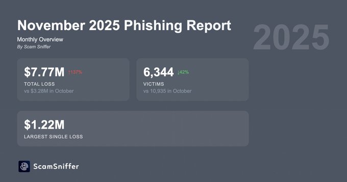 Trong tháng 11, tổng số tiền bị rút trộm qua các vụ tấn công phishing đã lên tới gần 7,77 triệu USD, qua hơn 6.000 nạn nhân, tăng 137% so với tháng 10 mặc dù số lượng nạn nhân giảm 42%. Đặc biệt, các vụ tấn công “whale hunting” – săn tìm những ví lớn – ngày càng phổ biến, trong đó có các khoản thiệt hại lên tới hơn 1,2 triệu USD chỉ trong một lần ký permit.