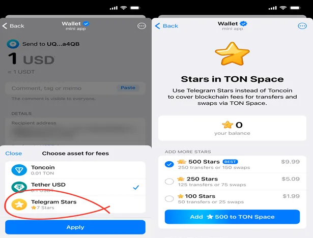 Ví TON Space vừa công bố tính năng mới cho phép người dùng thanh toán phí gas bằng cách sử dụng Telegram Stars, mở ra một bước tiến quan trọng trong việc làm cho các giao dịch blockchain trở nên dễ tiếp cận hơn trong hệ sinh thái Telegram.