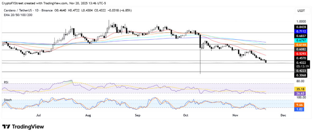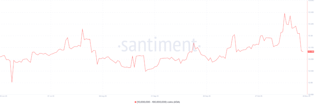 Trong tháng 11, giá ADA đã giảm gần 30%, phần lớn do các nhà đầu tư phải bán tháo để hạn chế thiệt hại, đặc biệt là những ai đã mua vào tại mức giá cao hơn. Tâm lý thận trọng và lo ngại rủi ro đang chi phối phần lớn hoạt động giao dịch, dẫn đến đà giảm mạnh của đồng tiền này.