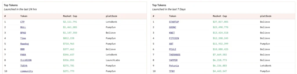 Hiện tại, một số token nổi bật từ Believe đã xuất hiện trong danh sách những token hàng đầu trên Solana, tuy nhiên, chỉ có hai token từ Believe lọt vào danh sách này trong 24 giờ qua, cho thấy sự biến động và không chắc chắn của nền tảng.