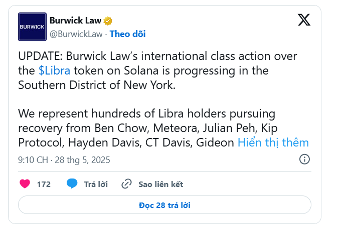 Mặc dù vụ kiện của nhóm Burwick Law tại Mỹ chủ yếu nhắm vào các thành viên không phải là người Argentina trong đội ngũ LIBRA, nhưng động thái của Circle có thể được xem là một sự phản ứng đối với những cáo buộc nghiêm trọng mà nhóm này đang phải đối mặt.