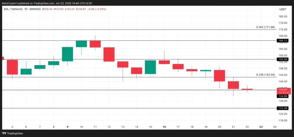 Áp lực từ phe bán cho thấy niềm tin ngày càng tăng rằng giá của SOL có thể tiếp tục giảm, đặc biệt nếu mức 134 USD không giữ được vai trò của một sàn hỗ trợ. Một sự phá vỡ dưới mức này không chỉ là một tín hiệu tiêu cực cho SOL mà còn có thể mở ra những tổn thất sâu hơn, kéo giá coin về mức 123.49 USD.