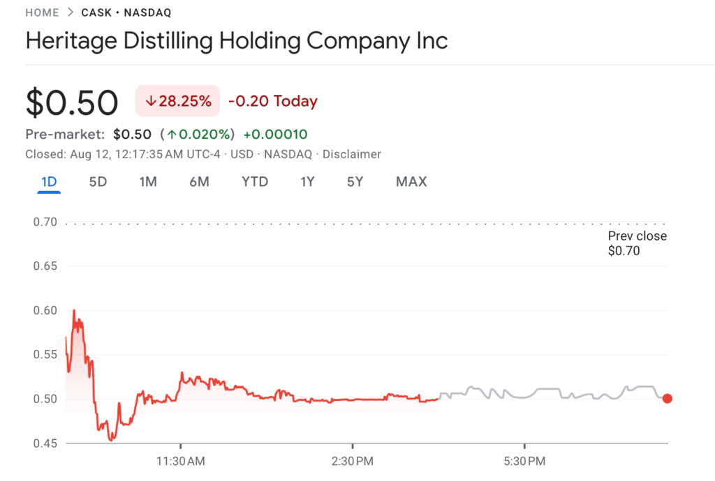 Tuy nhiên, thông báo này đến khi giá cổ phiếu của Heritage và giá token IP đều đang trong xu hướng giảm mạnh. Dữ liệu từ Google Finance ghi nhận cổ phiếu CASK của Heritage đã giảm gần 30%, về mức khoảng 0,49 USD. Đồng thời, theo thông tin từ CryptoSlate, giá token IP cũng đã giảm 3,65%, hiện ở mức khoảng 6,35 USD.