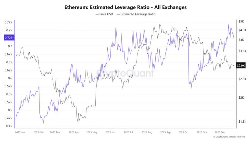 Chỉ số Tỷ lệ Đòn bẩy Ước tính của Ethereum vẫn duy trì mức cao, phản ánh mức độ sử dụng đòn bẩy trung bình của các nhà giao dịch trên thị trường phái sinh. Vào ngày 10/10, thời điểm xảy ra đợt thanh lý lớn nhất trong lịch sử thị trường, chỉ số này đạt 0,72. Hiện tại, chỉ số này đã quay trở lại mức tương đương hoặc cao hơn, lên tới 0,76.