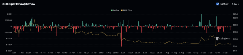 Hiện tại, DEXE vẫn thấp hơn khoảng 46% so với đỉnh tháng 9 ở mức 46 USD. Nếu đà tăng tiếp tục, đồng coin này có thể hướng trở lại vùng giá đó — tương đương mức hòa vốn cho những nhà đầu tư đã mua vào từ tháng 9 và vẫn giữ vị thế đến nay.