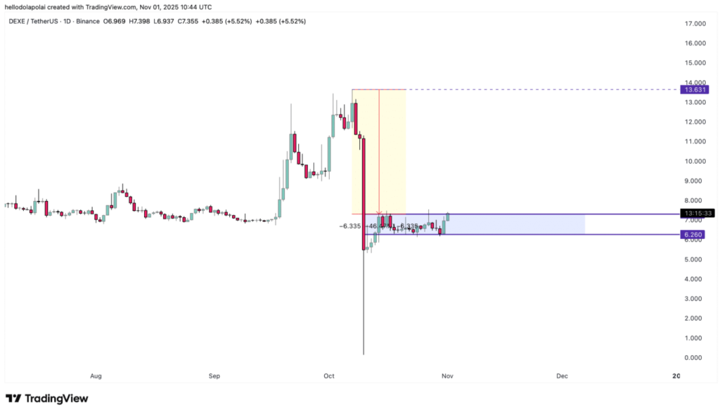 Tuy nhiên, DeXe hiện đang tiến gần vùng kháng cự quan trọng — khu vực có thể quyết định liệu xu hướng tăng sẽ tiếp tục bứt phá hay tạm thời chững lại.