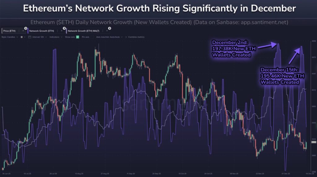 Theo Santiment, số lượng ví mới được tạo trên mạng Ethereum trung bình đạt 163.000 địa chỉ mỗi ngày trong tháng 12, cao hơn đáng kể so với mức trung bình 124.000 của tháng 7. Điều này phản ánh sự mở rộng quy mô và sự quan tâm ngày càng lớn của cộng đồng đối với Ethereum.