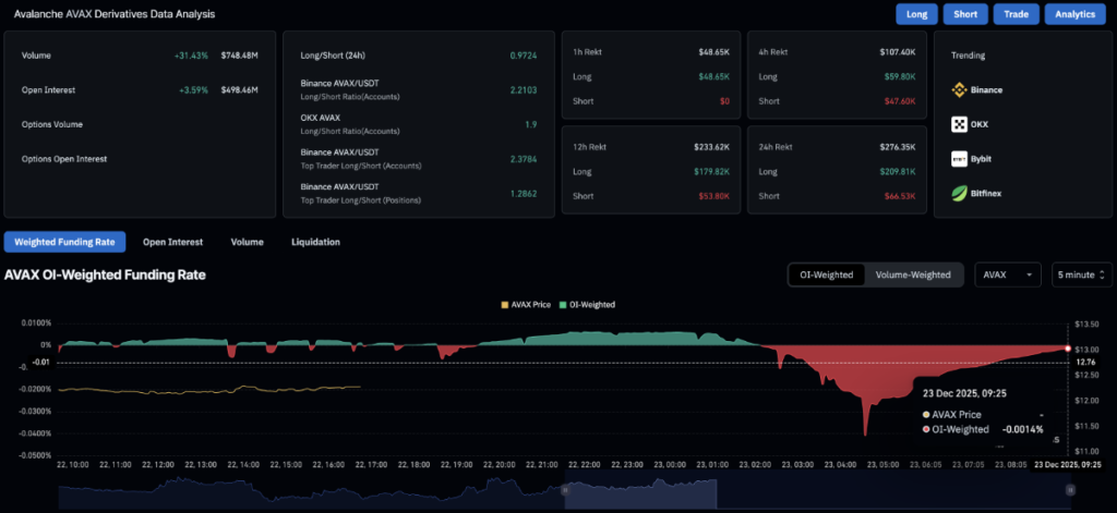 Dữ liệu từ CoinGlass cho thấy hợp đồng mở (Open Interest) của AVAX tăng gần 3,6%, phản ánh tâm lý tích cực và dòng tiền mới đổ vào.