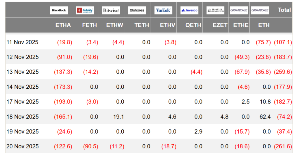 Các dòng tiền rút khỏi các quỹ ETF giao ngay ETH liên tục trong 9 phiên gần đây, với hơn 1,33 tỷ USD bị rút ra. Thị trường chứng kiến sự giảm tiếp xúc của các nhà đầu tư tổ chức đối với tài sản rủi ro, đồng thời đồng USD tăng mạnh trong bối cảnh lo ngại về lĩnh vực trí tuệ nhân tạo và các yếu tố kinh tế vĩ mô.