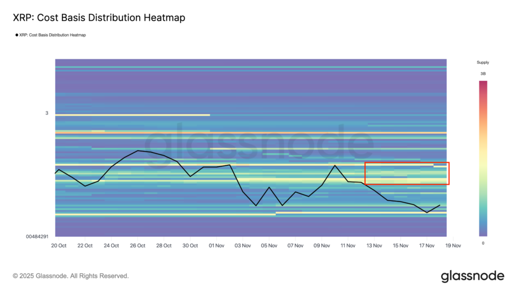Dữ liệu từ các chỉ số kỹ thuật cho thấy, khu vực giá từ 2,38 đến 2,40 USD – trùng với đường SMA 100 ngày và phần đỉnh của mô hình tam giác – đã trở thành vùng tích lũy lớn với hơn 3,23 tỷ XRP được mua vào. Đây chính là ngưỡng cản đáng kể đối với xu hướng tăng giá, đồng thời cũng phản ánh tâm lý phòng thủ của nhà đầu tư trong giai đoạn hiện tại.