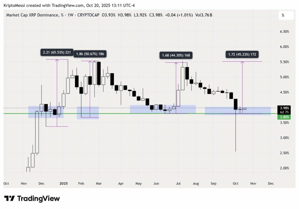 Trong khi đó, trader KriptoMessi nhận định rằng chỉ số XRP Futures Taker CVD đã chuyển sang xu hướng tăng giá trong những ngày gần đây. Điều này cho thấy sự phục hồi về mặt thống trị thị trường của XRP, mặc dù còn nhiều biến động trong ngắn hạn. Đặc biệt, các hoạt động chốt lời lớn như chuyển 30.000 Bitcoin (BTC) lên sàn để bán tháo vào năm 2021 đã không làm ảnh hưởng lớn đến đà tăng của Bitcoin, và tương tự, các hoạt động bán XRP của Larsen được dự báo sẽ không gây ảnh hưởng đáng kể tới xu hướng dài hạn.