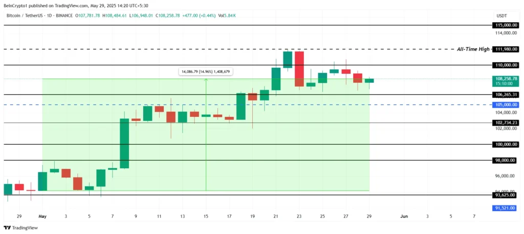 Bitcoin (BTC) đã có một tháng 5 đáng nhớ với một đợt phục hồi mạnh mẽ, thiết lập mức cao nhất mọi thời đại (ATH) mới là 111,980 USD. Tuy nhiên, khi bước vào tháng 6, nhiều câu hỏi được đặt ra về khả năng duy trì đà tăng này của Bitcoin. Liệu sức hút của đồng tiền này có thể tiếp tục hay sẽ có một đợt điều chỉnh ?
