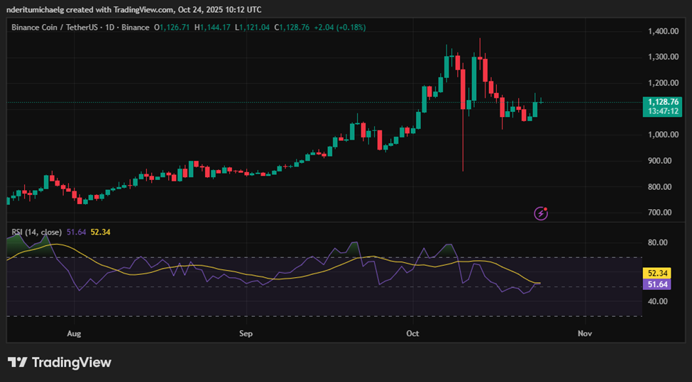 Sau thông tin về lệnh ân xá của Tổng thống Trump, giá BNB đã có sự tăng trưởng rõ rệt. Đầu tuần, giá BNB chạm đáy khoảng 1.052 USD, sau đó đã phục hồi vượt qua mức 1.100 USD và hiện đang duy trì quanh mức 1.128 USD. Đây là tín hiệu tích cực, cho thấy khả năng thị trường bắt đầu ổn định và sẵn sàng cho các đợt tăng giá tiếp theo.