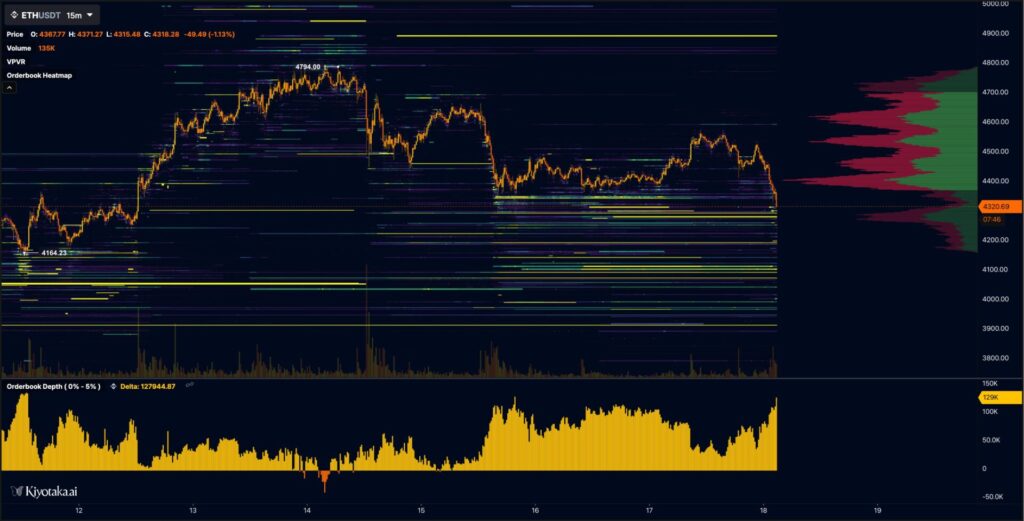 Nền tảng giao dịch Kiyotaka đã chỉ ra rằng khu vực từ 3.900 đô la trở xuống chứa một “cụm lệnh mua khổng lồ”, khiến cho đây trở thành mức quan trọng cần quan sát trong bối cảnh thanh khoản và các đảo chiều tiềm năng.