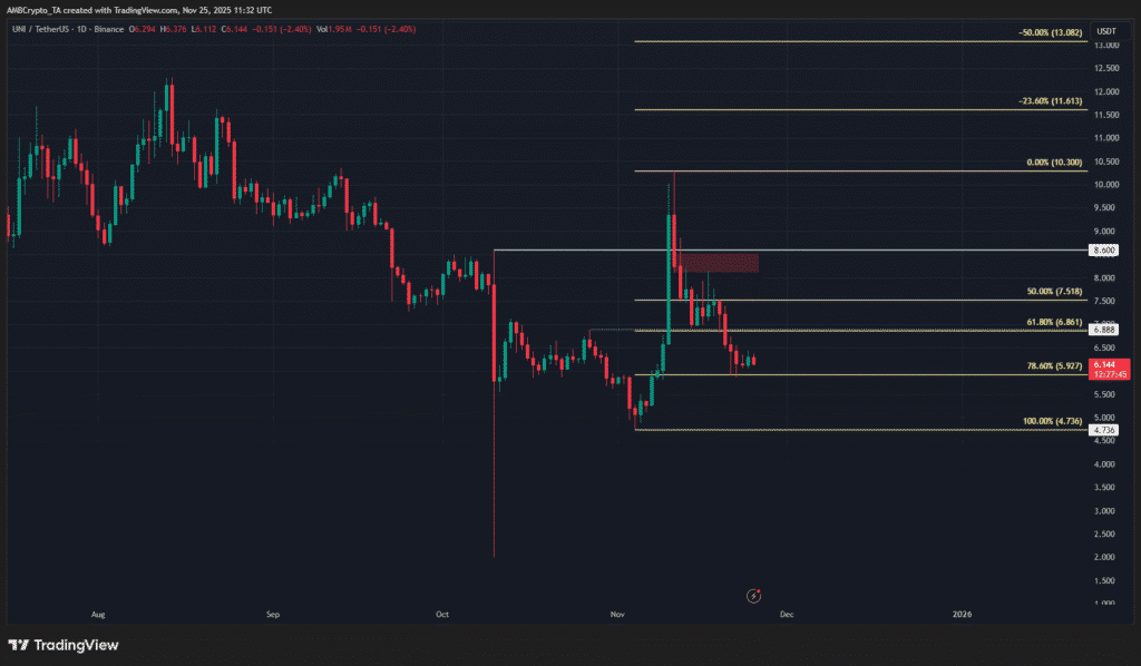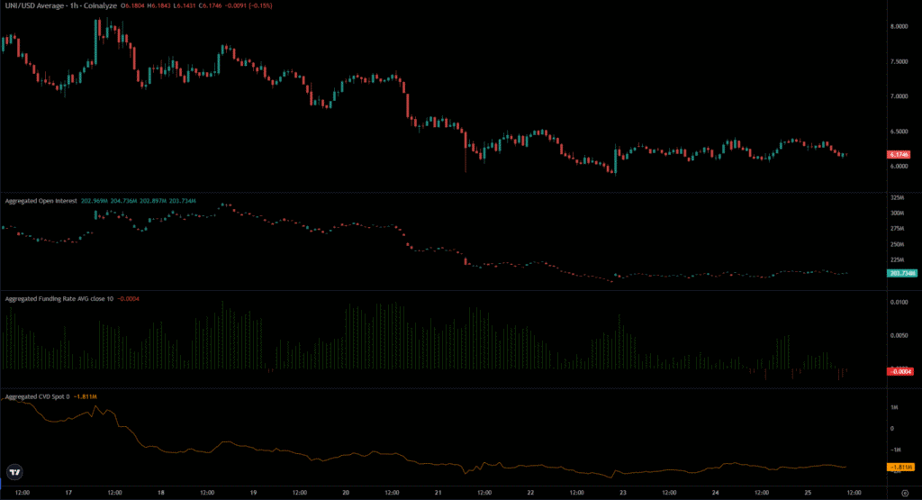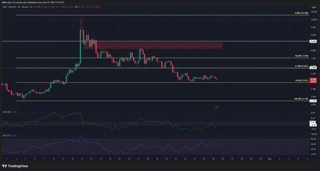 - Nếu giá UNI vượt qua mức 6,55 USD, đây sẽ là tín hiệu tích cực, cho thấy khả năng thị trường bắt đầu phục hồi.