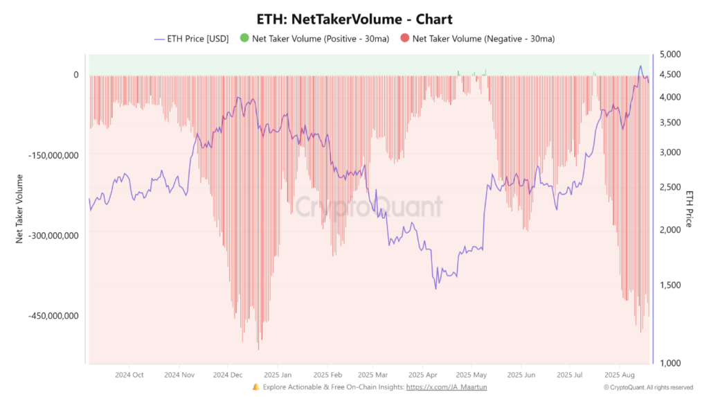 Mới đây, khối lượng bán net trên hợp đồng tương lai Ethereum đã tăng mạnh, gần đạt đến mức kỷ lục từng ghi nhận vào tháng 12 năm trước, thời điểm trước khi ETH lao dốc hơn 60% trong những tháng tiếp theo. Mặc dù áp lực bán từ các vị thế này là không hề nhỏ, nhưng chúng cũng có thể tạo ra tác động tích cực, kích thích một đợt “short squeeze” nếu xu hướng tăng có thể duy trì.