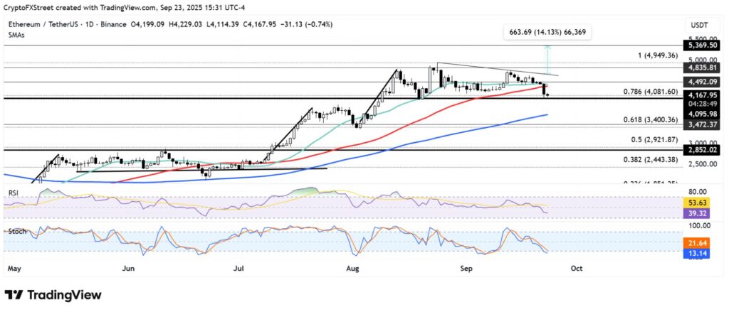Vào ngày thứ Ba, giá ETH đã kiểm tra lại khu vực hỗ trợ quanh mốc 4.100 USD. Hiện tại, áp lực của phe gấu vẫn chiếm ưu thế trong xu hướng ngắn hạn với giá duy trì ở mức dưới đường trung bình động đơn giản (SMA) 50 ngày.