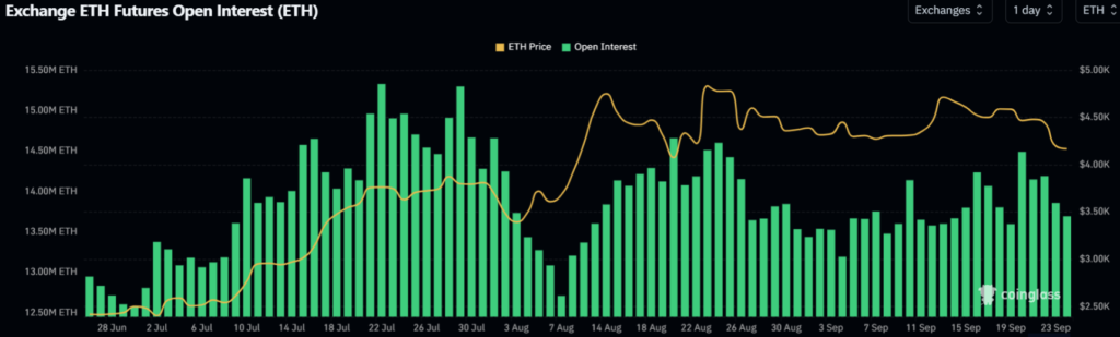 Nguyên nhân chính dẫn đến tình trạng này là sự gia tăng đáng kể của đòn bẩy trong khoảng thời gian cuối tuần. Chỉ trong hai ngày thứ Sáu và thứ Bảy, tổng giá trị các hợp đồng tương lai chưa tất toán (Open Interest – OI) đã tăng thêm 890.000 ETH. Tuy nhiên, chỉ trong ba ngày liên tiếp giảm giá sau đó, mức tăng này gần như đã bị xóa sổ hoàn toàn.
