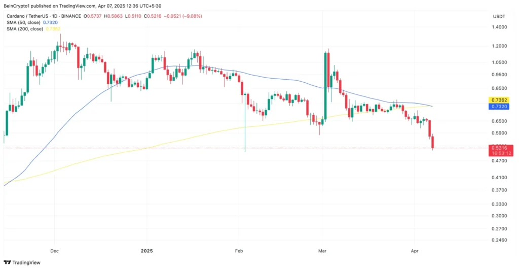 Cardano (ADA) hiện đang đối mặt với một giai đoạn khó khăn trong bối cảnh thị trường tiền điện tử nhiều biến động. Trong vòng 24 giờ qua, ADA đã chứng kiến mức giảm giá lên đến 10%, đánh dấu một trong những đợt suy giảm mạnh nhất trong những tháng gần đây. Hiện tại, ADA đang được giao dịch ở mức 0.52 USD, đây là mức giá thấp nhất kể từ tháng 11/2024, làm gia tăng lo ngại về tâm lý thị trường đối với đồng tiền này.