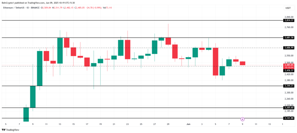 Thị trường Ethereum (ETH) hiện đang gặp phải một giai đoạn đi ngang, với giá cả không có dấu hiệu phục hồi mạnh mẽ. Hiện tại, ETH đang được giao dịch quanh mức 2,476 USD và chưa thể điều chỉnh vượt qua các ngưỡng kháng cự quan trọng.