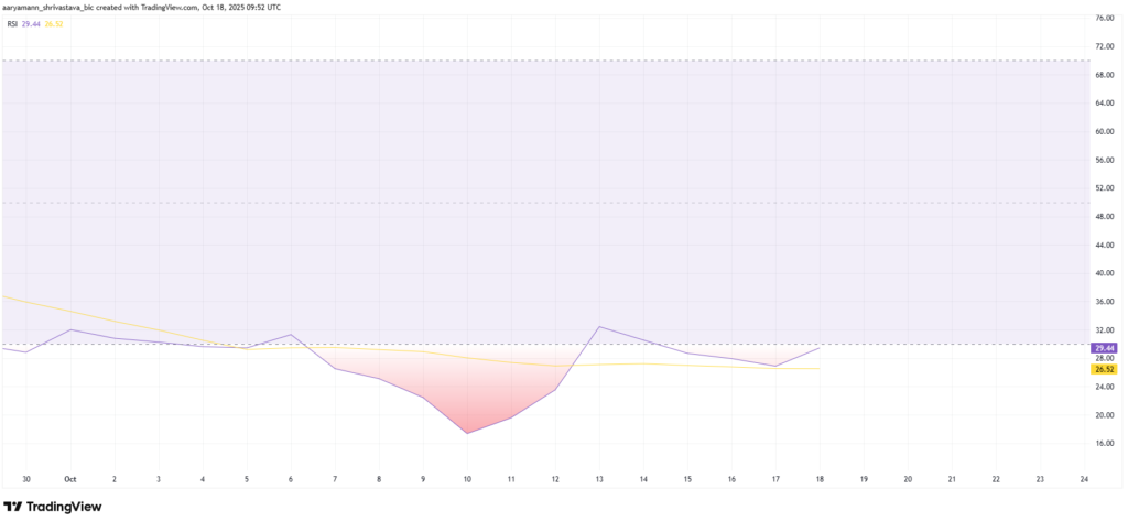 - Hiện tại, RSI của Pi Coin đang ở trong vùng quá bán, phản ánh tình trạng bán tháo quá mức và khả năng phục hồi ngắn hạn.