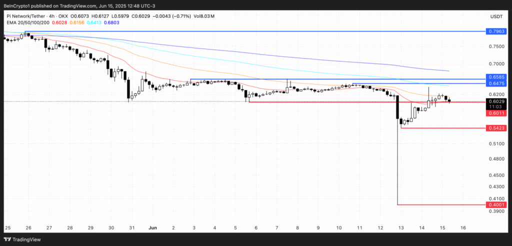 Trong bối cảnh hiện tại, giá của Pi Network đang giao dịch gần các mức quan trọng, với sự không chắc chắn rõ rệt từ phía nhà đầu tư. Sau khi chứng kiến sự giảm giá mạnh do các xung đột xảy ra tại vùng Trung Đông, hành động giá hiện tại đang treo lơ lửng trên mức hỗ trợ tại 0.601 USD.