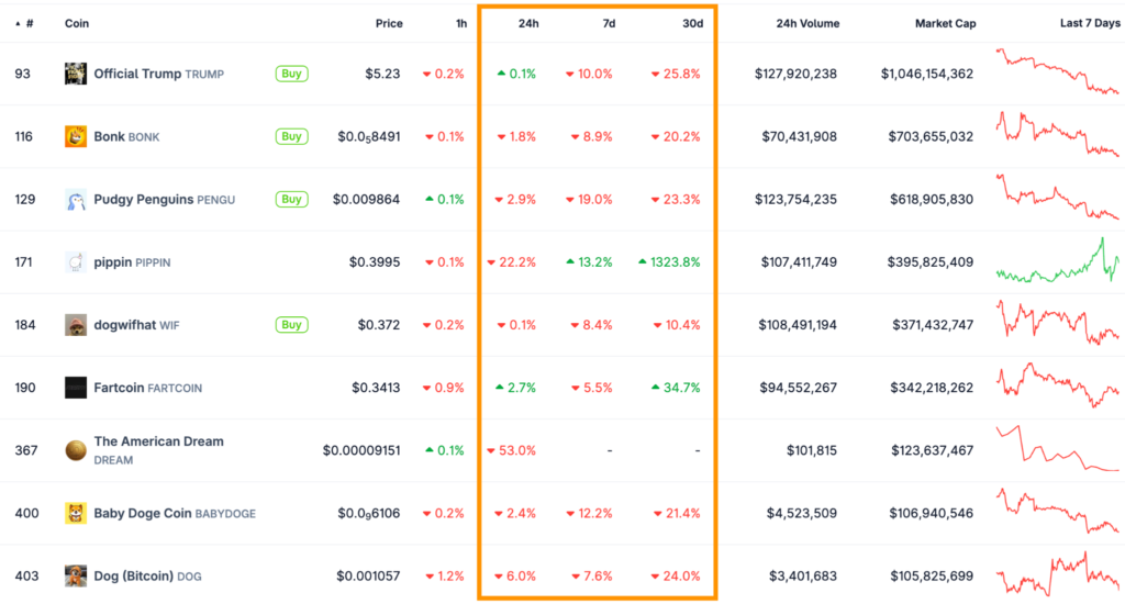 - Giảm giá memecoin: