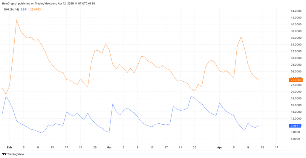 Theo các chỉ số kỹ thuật, thị trường ETH hiện đang chịu áp lực mạnh từ phía bán. Một trong những chỉ số đáng lưu ý là Directional Movement Index (DMI), với chỉ số hướng dương (+DI) hiện đang nằm dưới chỉ số hướng âm (-DI). Điều này báo hiệu rằng thị trường đang trong xu hướng giảm, với áp lực giá giảm nắm giữ thế chủ động.