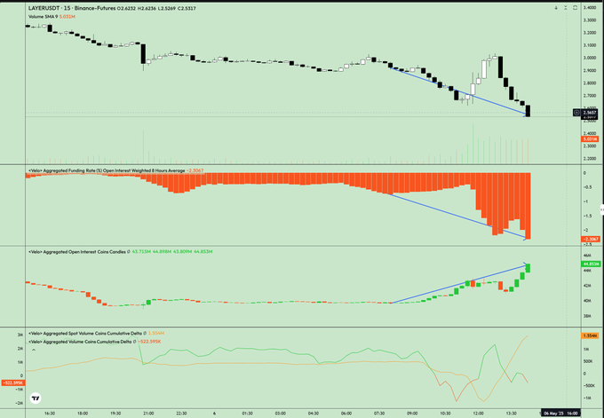 Cùng với đó, một số nhà đầu tư cũng chỉ ra rằng trong giờ giao dịch tại châu Á, có vẻ như một “cá voi” (nhà đầu tư lớn) đã quyết định thoát khỏi các vị thế của mình. Một bài đăng trên mạng xã hội X ngày 6 tháng 5 đã mô tả sự kiện này là một “lừa đảo thoát”, cho rằng ví cá voi này đã âm thầm mở một lệnh bán khống lớn qua các hợp đồng tương lai vĩnh viễn, làm giảm tỷ lệ tài trợ xuống mức âm, rồi từ từ bán đi các vị thế mua của mình.