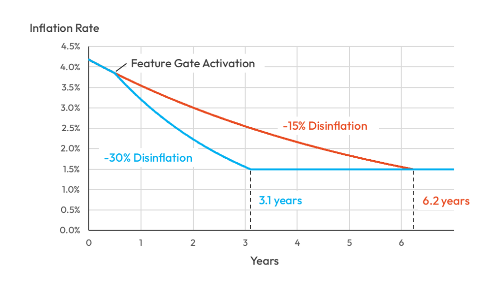 - Thay đổi mô hình lạm phát: Thay vì duy trì mức lạm phát 15% như hiện tại, mạng lưới sẽ điều chỉnh giảm dần, hướng tới mức lạm phát tối đa 1,5%.