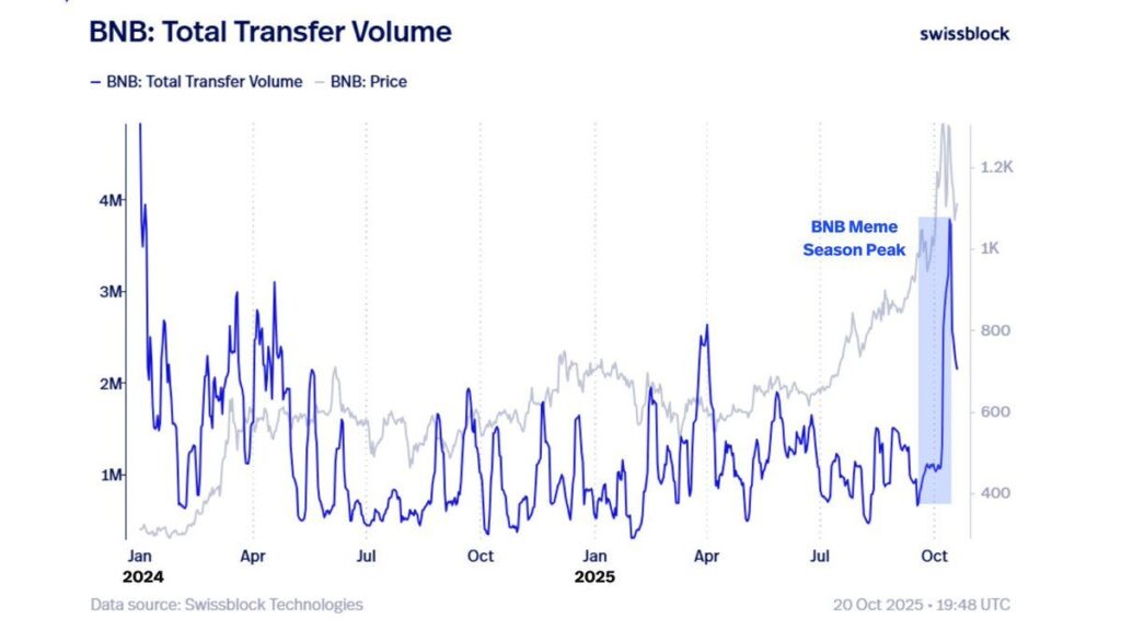 - Khối lượng giao dịch on-chain tăng đột biến: Thể hiện tính thanh khoản cao và hoạt động sôi động của hệ sinh thái BNB.