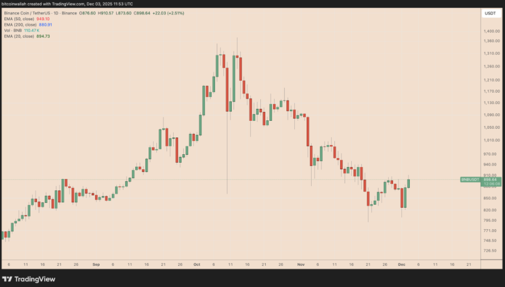 Trong những ngày gần đây, đồng tiền mã hóa BNB đã có bước phục hồi đáng kể sau khi giảm sâu về vùng đáy quanh mức 800 USD. Cụ thể, giá BNB đã vượt qua mốc 910 USD trong phiên giao dịch ngày thứ Năm, mở ra kỳ vọng về một cú bứt phá mạnh mẽ hướng tới mức giá 1.000 USD.