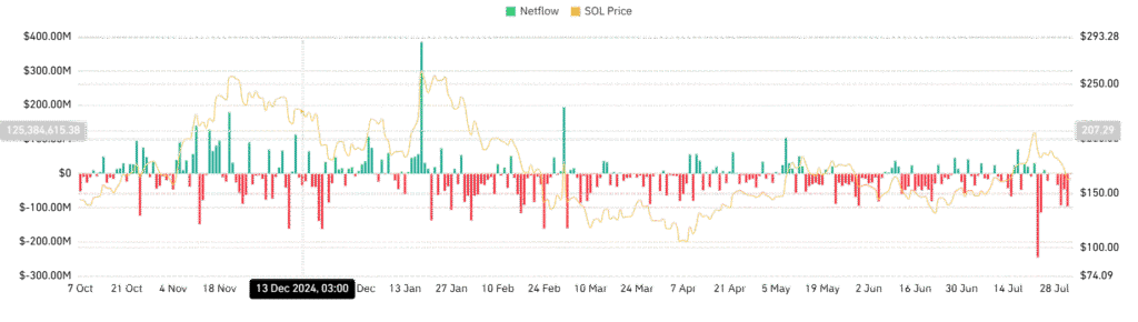 Hiện tại, dòng chảy của SOL đứng ở mức -1,86 triệu USD, tuy đã giảm so với mức -95,49 triệu USD được ghi nhận vào ngày 1/8, nhưng vẫn phản ánh một lực mua nhất định từ phía nhà đầu tư nhỏ lẻ.
