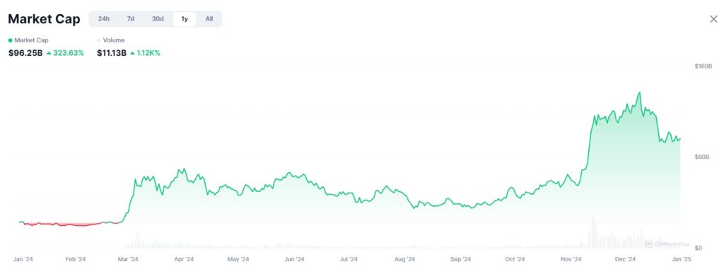Tuy nhiên, không phải mọi diễn biến đều tích cực. Sau một năm đầy hứa hẹn, tháng 12 lại chứng kiến sự đảo chiều trong tăng trưởng của memecoin. Tổng vốn hóa thị trường đã đạt đỉnh 137 tỷ USD, nhưng chỉ trong khoảng vài tuần ngắn ngủi, nó đã giảm xuống còn 92 tỷ USD, khiến thị trường mất đi khoảng 45 tỷ USD.
