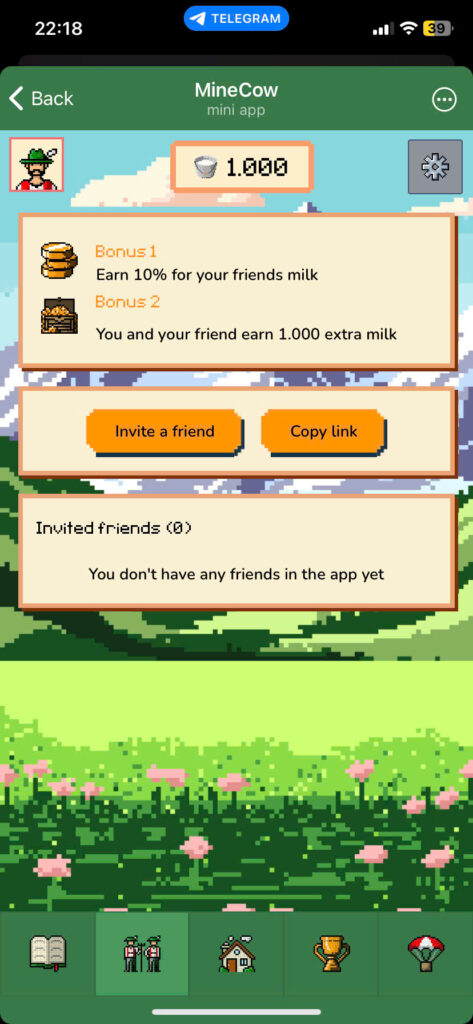 Một cách khác để người chơi gia tăng phần thưởng là thông qua hệ thống giới thiệu. Người chơi có thể chia sẻ liên kết giới thiệu độc đáo của mình đến bạn bè. Khi có những người mới gia nhập thông qua liên kết đó, cả hai sẽ nhận được các phần thưởng hấp dẫn. Đây không chỉ là một cơ hội để kiếm thêm phần thưởng mà còn là cách để xây dựng cộng đồng MineCow vững mạnh.