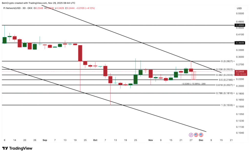 - Phần lớn năm 2025, giá Pi Coin có xu hướng đi xuống.