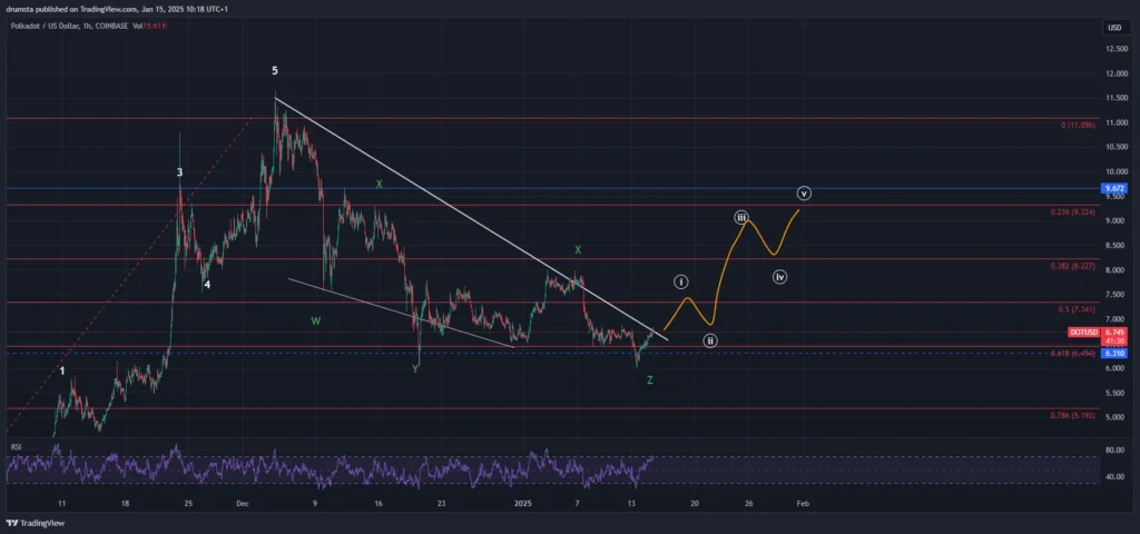 Chuyển sang phân tích kỹ thuật, biểu đồ hàng ngày cho thấy Polkadot đã hình thành hai mô hình giá quan trọng có thể tạo ra động lực tăng giá trong tương lai gần. Một trong những mô hình nổi bật là đáy đôi ở mức 6 đô la, một mô hình thường dẫn đến sự tăng giá mạnh mẽ.