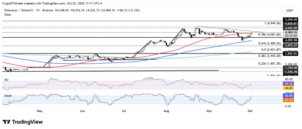 Sau khi vượt qua SMA 50 ngày, Ethereum cần phải duy trì đà tăng để vượt qua đường xu hướng giảm dài hạn, điều này sẽ là bước đệm quan trọng để tiến tới vùng giá mục tiêu 4.835 USD. Ngược lại, thất bại tại mức 4.500 USD có thể đẩy giá về mức hỗ trợ 4.100 USD, nơi có sự hỗ trợ của đường SMA 100 ngày.