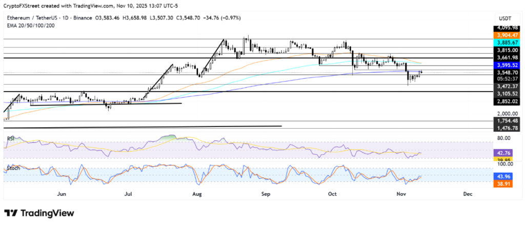- Nếu ETH duy trì đà tăng và vượt qua mức 3.660 USD, khả năng cao sẽ hướng tới vùng giá 3.815 USD, nơi có sự hội tụ của EMA 50 ngày và 100 ngày.