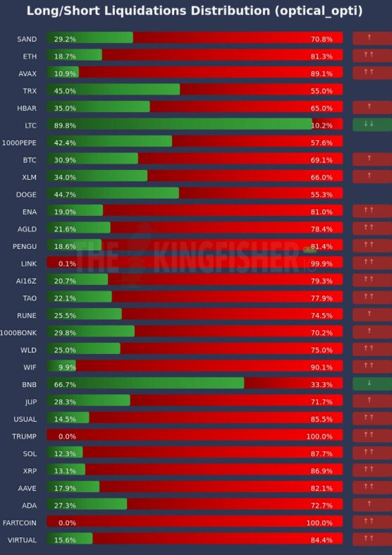 Nhà phân tích nổi tiếng TheKingfisher đã chỉ ra một yếu tố tiềm năng từ các lệnh bán khống (short) treo phía trên. Ông viết: “Trong biểu đồ của BTC, gần 70% các lệnh thanh lý là vị thế_short nằm phía trên vùng giá hiện tại.” Điều này cho thấy một “bể nhiên liệu” lớn đang chờ được kích hoạt, một yếu tố mà các tổ chức lưu ý khi phân tích thị trường.