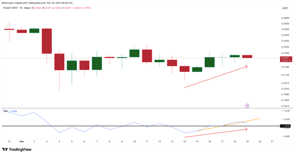 Trong tháng vừa qua, giá Pi Coin duy trì mức quanh $0,226 – gần như không có biến động đáng kể trong 24 giờ qua. Điều này cho thấy sự ổn định tạm thời, khiến nhiều nhà đầu tư cảm thấy an tâm về khả năng phục hồi. Tuy nhiên, các chỉ báo kỹ thuật lại cho thấy những dấu hiệu cảnh báo sớm về khả năng thị trường sắp bước vào nhịp điều chỉnh giảm.