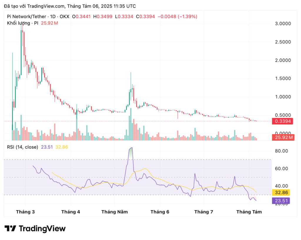 Dù các động thái này thể hiện một tầm nhìn dài hạn của Pi, nhưng giá token PI vẫn không có dấu hiệu phục hồi. Tháng 8/2025, giá PI giảm xuống mức thấp mới, dẫn đến sự hoài nghi trong cộng đồng về khả năng thành công của dự án.