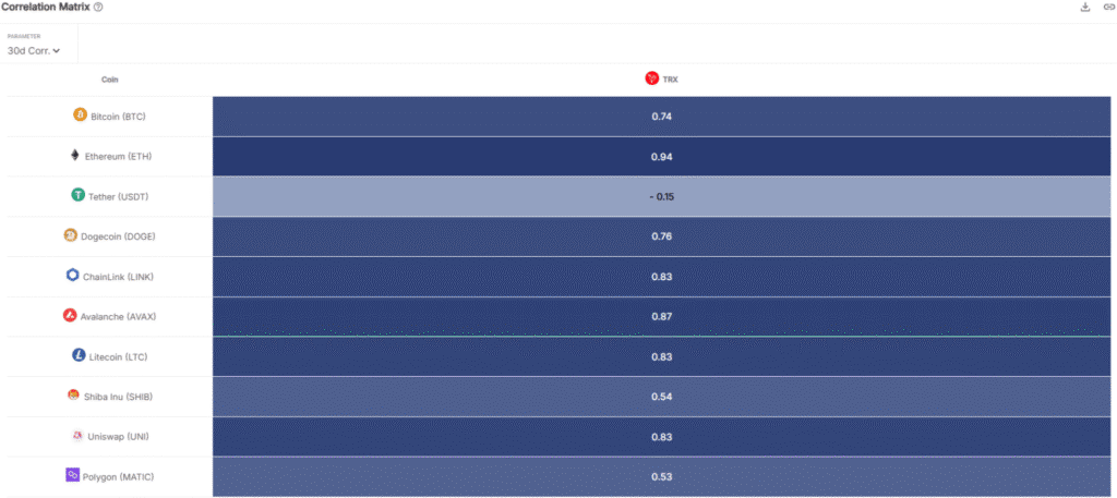 Dữ liệu từ IntoTheBlock cho thấy TRX có mối liên hệ tích cực mạnh mẽ hơn với ETH (0,94) so với Bitcoin (0,74). Điều này thể hiện rõ rệt qua biến động giá gần đây, cho thấy rằng TRX tiếp tục là sự lựa chọn hấp dẫn cho nhà đầu tư khi vẫn giữ đà tăng trưởng, mặc dù BTC đang có xu hướng điều chỉnh về mức hỗ trợ $112.000.