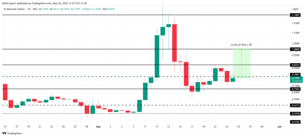 Tuy nhiên, nếu thị trường rộng lớn hơn có dấu hiệu phục hồi và cải thiện, Pi Network có thể có cơ hội vượt qua các mức kháng cự ở 0.78 USD và 0.87 USD. Khi những ngưỡng kháng cự này bị phá vỡ, điều này có thể giúp khôi phục niềm tin của nhà đầu tư và mở đường cho một đợt tăng trưởng mới, hướng đến mục tiêu 1.00 USD.