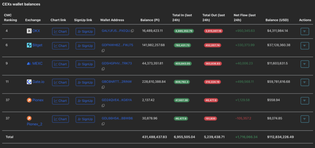 Chỉ trong vòng 24 giờ, lượng PI được nạp vào các sàn CEX đã tăng mạnh, đạt 1,71 triệu token. Đây là dấu hiệu rõ ràng cho thấy nhiều nhà đầu tư đang rút dần niềm tin, chuẩn bị cho các đợt mở khóa token lớn sắp tới.