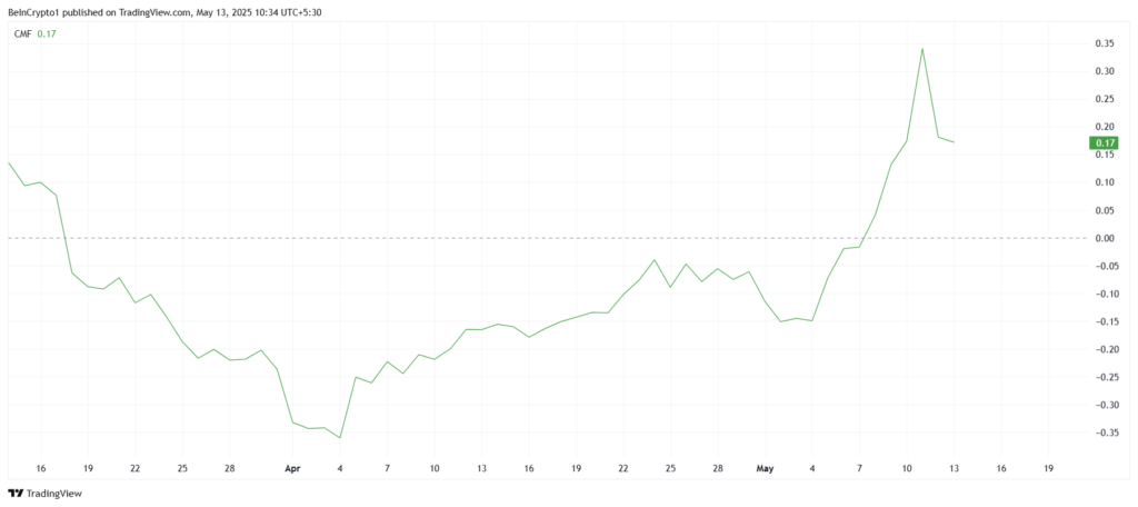 Thêm vào đó, chỉ báo Chaikin Money Flow (CMF) của Pi Network hiện đang nằm trên đường zero, cho thấy dòng tiền vào vẫn rất mạnh mẽ. Mặc dù có dấu hiệu giảm nhẹ gần đây, tình hình này không có khả năng kéo dài, nhất là khi thị trường chứng tỏ sức mạnh và tiềm năng phục hồi của các loại tài sản kỹ thuật số.