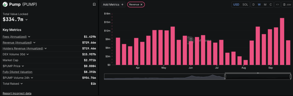 Doanh thu ổn định và tăng trưởng của Pump.fun đã minh chứng cho sự thu hút bền vững của nền tảng này trên thị trường. Trong vòng bốn tuần liên tiếp, Pump.fun xác nhận doanh thu hàng tuần vượt qua mốc 10 triệu USD, một minh chứng rõ ràng cho nhu cầu mạnh mẽ trong việc tạo ra token trong không gian tiền điện tử. Tính đến tuần này, nền tảng đã đạt được 8,65 triệu USD với khả năng cao vẫn sẽ duy trì đà phát triển này trong thời gian tới.